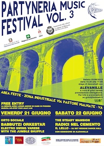 Giunta alla sua terza edizione la Partyneria torna alle origini e alla location dov’è nata: il teatrotenda di via Pastore, presso la zona industriale di Malnate. Il via alle danze sarà dato venerdì 21 giugno dagli Orto Sociale, brass band della provincia di Varese che, con il suono inconfondibile dei fiati e le parate in mezzo al pubblico festante, inviterà subito tutti i presenti a entrare in pista. A seguire da un campo nomade una balcanica voce raminga smuove l’aria, trasportando con sé una nota che urla: “Cigani!”, è il momento della Babbutzi Orkestar, delle sue sonorità e del suo gramelot dell’Est Europa, impossibile stare fermi.