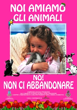 Migliaia di manifesti sono affissi sui pali dell’illuminazione raffiguranti una bambina che abbraccia un coniglietto come per voler dire che ancora tanti sono gli amanti degli animali. Così è iniziata la campagna 2013 contro l’abbandono degli animali, in estate più frequente, da parte del Comune di Olgiate Olona.«Purtroppo ancora troppo spesso vengono abbandonati o maltratti animali domestici di ogni genere, ma la situazione si può migliorare sensibilizzando la coscienza di molte persone», questo afferma Alfonso Castellone, il comandante della Polizia Locale e responsabile dell’Ufficio Tutela Animali.