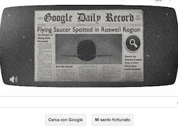 E' dedicato all'anniversario dell'incidente di Roswell il doodle di Google di oggi. Che invita chi ci "passa" a giocare insieme al piccolo ufo che sarebbe caduto l'8 luglio del 1947