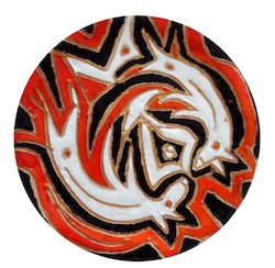 «Un ritorno al pensiero elementare per ricominciare ad apprezzare la vita – scrive Erika La Rosa nella presentazione in catalogo – Un segno, una traccia, un’impronta per non dimenticare l’origine di tutto e cancellare il superfluo. Le opere in ceramica di Giorgio Piccaia partono da questa premessa. Un’ impresa titanica, direi, un viaggio impervio, imprevisto, difficile ma proprio per questo avvincente. I timidi passi verso la ricerca dell’elemento primordiale e sull’origine della vita nascono sulla tela, quasi per caso, quando i segni tracciati prendono le sembianze di pesci stilizzati, che nuotano nel corso della corrente, si fanno trasportare liberi o ritornano controcorrente. Nell’acqua, infatti, la letteratura scientifica vuole l’origine della vita. In uno degli elementi più incorporei gli studiosi rimandano a luogo dove tutto ebbe inizio. Un istante in cui tutto cambia, oltre quattro miliardi di anni fa».