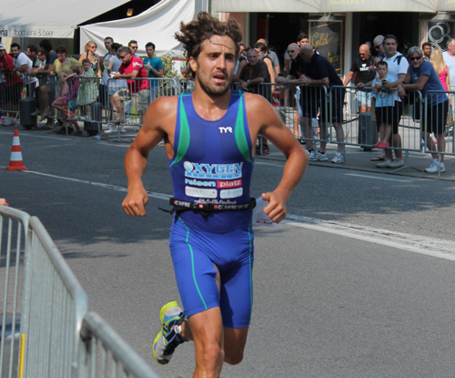 L'arcisatese dell'Oxygen Triathlon ha vinto la gara di Londra della specialità che unisce nuoto e corsa. Battuti sul filo di lana uno spagnolo e un francese