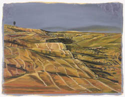 Nei dipinti recenti dell’artista i temi principali ricorrenti sono due: la natura morta, il paesaggio. La natura morta è sintetizzata nel piatto di frutta, protagonista e centro dello spazio. Il paesaggio, esteso in orizzontale, è dato da una successione di basse colline viste da lontano, oppure dalla sponda del mare. I due temi, apparentemente differenti, sono però unificati. Troviamo il riferimento a un’unica realtà soggiacente, la Natura, che si manifesta sia nei prodotti vegetali sia nella terra stessa. Il trattamento stilistico è coerente, basato sulla viva limpidezza della luce, e la chiarezza dell’elaborazione materica e del dinamismo della pennellata. Presentando la mostra, il critico Giuseppe Curonici osserva che attraverso questi elementi la pittura di Anna Sala si stacca dal naturalismo in modo tale che l’immagine risultante è psicologica, e la visione materiale si trasforma in visione mentale.