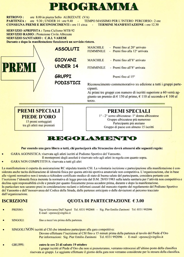 La Stracascine era nata, infatti, su iniziativa della Pro Loco di Albizzate nel 1994, con lo scopo di far conoscere i sentieri che uniscono le vecchie