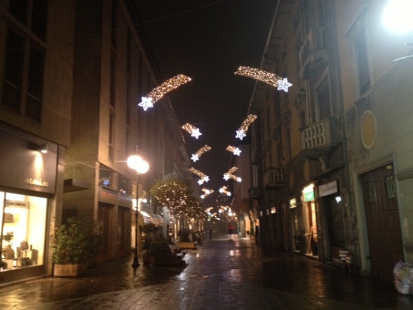 Sabato e domenica a coinvolgere i più piccoli ci saranno alcuni personaggi dei cartoni animati (Hello Kitty, Gatto Silvestro e Shaun the Sheep) che si sposteranno nelle vie del centro e saranno disponibili anche a posare per divertenti fotografie. Sabato e nei pomeriggi della prossima settimana (15.30 -18.30) i bambini potranno anche personalizzare con colori e applicazioni i decori di legno che serviranno poi ad abbellire il grande albero di Natale che svetta nella piazza. L’albero (che è lo stesso da qualche anno) sarà decorato anche con grandi fiocchi rossi e un’ illuminazione particolare. Ad accendere le luci sarà il sindaco Farioli, sempre sabato 30 alle 17. A proposito di luce, dal 29 novembre al 6 gennaio un cielo di stelle luccicanti accoglierà i passanti nelle principali piazze e vie del centro e non mancherà il tradizionale il “viale di luci” lungo i viali Cadorna, Duca d’Aosta e Diaz.