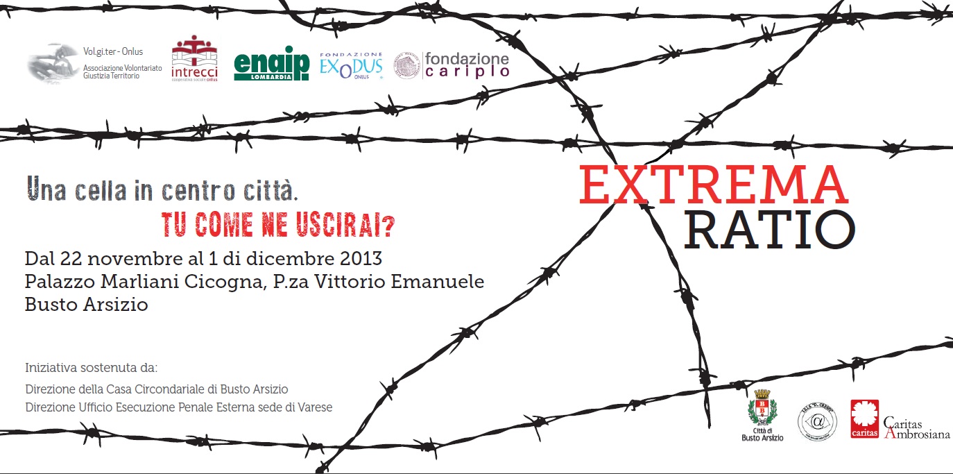 È questa la “sfida”, se così possiamo chiamarla, che i cittadini potranno affrontare dal 22 novembre all’1 dicembre a Palazzo Marliani Cicogna (piazza Vittorio Emanuele) a Busto Arsizio grazie al progetto ExtremaRatio. Qui sarà infatti riprodotta fedelmente una cella di 8 metri quadri: si tratta dell’installazione creata nel carcere di Bollate e di proprietà della Caritas Ambrosiana. Ad accogliere i visitatori ci saranno giovani studenti del Liceo Crespi di Busto e dei gruppi Agesci di Busto (Busto 1, Busto 3; Busto 5; Legnano 9). Con loro ci saranno un operatore e un ex-detenuto, mentre la Protezione Civile di Busto Arsizio offrirà un supporto logistico.