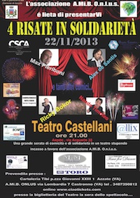 Venerdi 22 novembre, al teatro Castellani di Azzate l’associazione A.Mi.B. ONLUS (Assistenza ai Minori in Brasile) presenta lo spettacolo "4 risate in solidarietà".