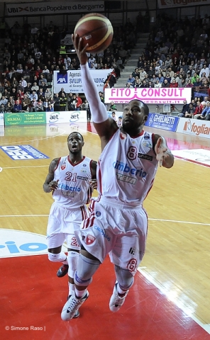 PALLA A DUE – Fabrizio Frates, ex di turno, è regolarmente in panchina dopo il forfait di Ulm dovuto a una forte influenza. Il coach biancorosso manda in campo il quintetto classico anche se dopo appena 3′ dovrà fare a meno di Polonara per una distorsione alla caviglia. Non rienterà più.