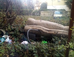 I casi concreti sono numerosi, segnalati anche dai cittadini. In Via Lazzaretto a Cedrate il Comune ha rilevato per esempio una significativa discarica di amianto su un terreno privato: in questo caso (vista la pericolosità dell’amianto) interviene il Comune con risorse proprie per pulire l’area, ma poi il privato dovrà provvedere a cintare il terreno, per evitare altri depositi abusivi (per cui potrebbe essere, a questo punto, sanzionato). Altro caso segnalato, un fazzoletto di terreno su via Mameli, a ridosso del ponte dell’autostrada (nella foto): un piccolo spazio invaso da rovi, materiali vari e persino un’automobile ferma da