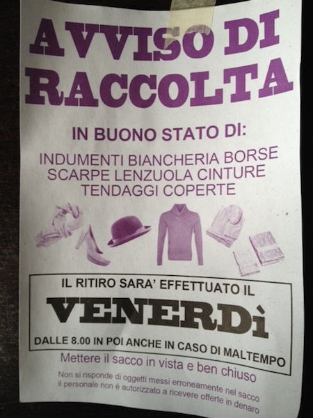 Ora qualcuno raccoglie abiti e basta, nessuna beneficienza, nemmeno celata. Lo sappia chi decide di effettuare la "donazione".