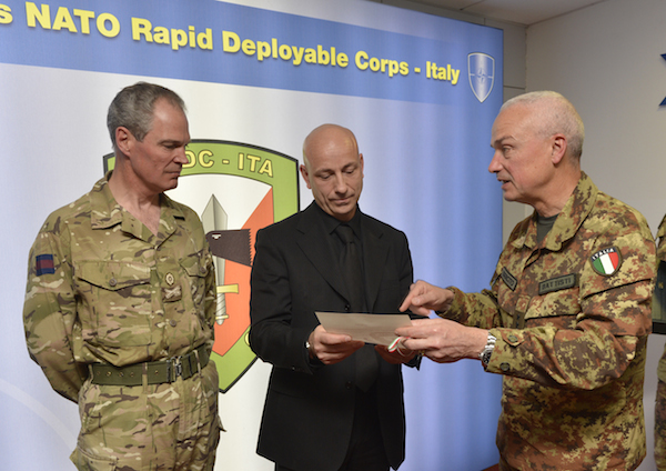 La Nato ha consegnato il riconoscimento (per la prima volta) al sindaco per la sua vicinanza e il suo impegno per la caserma Ugo Mara