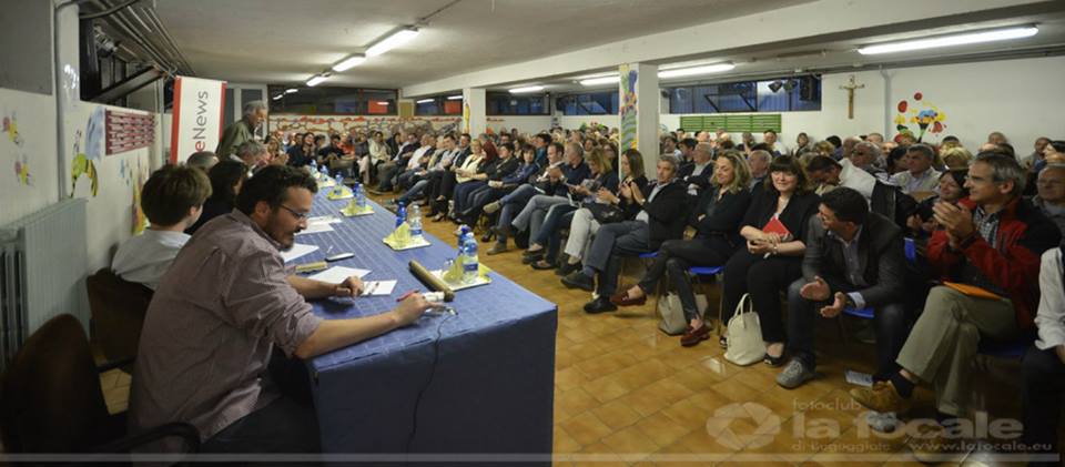 Sala strapiena, sedie non sufficienti per contenere tutta la voglia di partecipazione dei buguggiatesi, arrivati in più di 200 (forse erano addirittura 250) per ascoltare il dibattito pubblico tra i quattro candidati sindaco: Cristina Galimberti per Lista Civica e Lega Nord, Mauro Camplani di Impegno Civico, Massimiliano Comparin di Progetto Paese e Lorenzo Carabelli di Buguggiate nel Cuore si sono confrontati senza risparmiarsi stilettate, in un clima tutto sommato di rispetto reciproco e senza colpi bassi, salvo qualche rara eccezione.