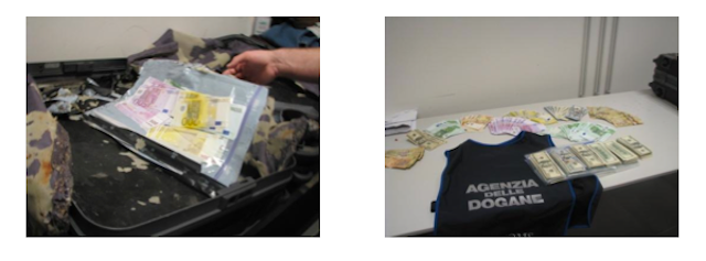 Negli scali aeroportuali sono frequenti i sequestri di denaro non dichiarato, in contanti o in titoli: in questo caso finanzieri e doganieri hanno "pizzicato" un passeggero in viaggio dagli Emirati