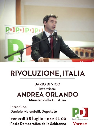 Alle 21, infine, sarà alla Festa Democratica della Schiranna, dove verrà intervistato dal giornalista del Corriere della Sera Dario Di Vico.