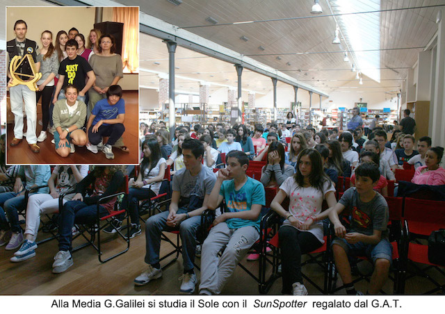 Il premio che il GAT ha conferito alla scuola G.Galilei per questi lavori è stato decisamente ‘strategico’, essendosi trattato di un semplice strumento (‘Sunspotter’) per osservare le macchie solari: grazie anche alla lungimiranza di alcuni professori della scuola questo strumento ha permesso, a partire dallo scorso anno, di lanciare uno studio sistematico e sperimentale del Sole e delle macchie solari capace di tenere coinvolti i ragazzi per tutto il corso dell’anno scolastico.