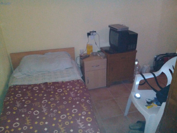 Stanze con brandine e materassi, una piccola tv e una sedia. Le foto scattate all'interno dell'edificio nella zona industriale del paese nel quale vivevano 17 operai impiegati in Svizzera