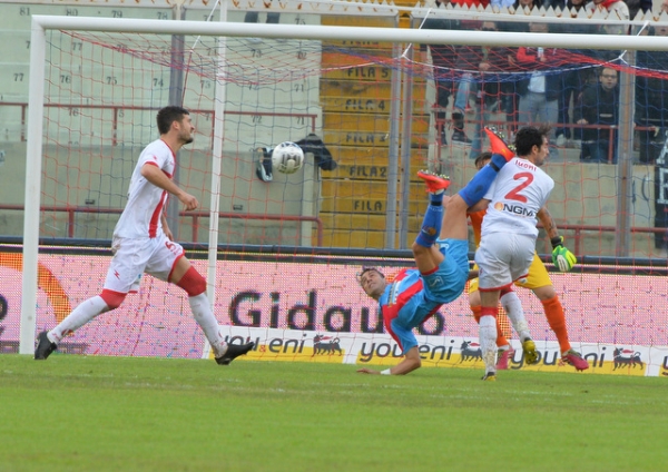 Si interrompe a Catania la striscia positiva dei biancorossi che lasciano il primo tempo ai padroni di casa (Calaiò e Rosina in gol) e sfiorano la rimonta nella ripresa. Gol di Neto, il portiere Frison evita il pareggio