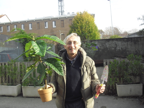 Poi tutti insieme ci si è recati all’”Orto Bossi”, dove un nonno volenteroso si è improvvisato giardiniere ed ha proceduto alla piantumazione del giovane nespolo.