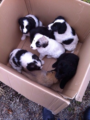 I sette cagnolini, future taglie medio-grandi, sono stati trovati in uno scatole e ora si trovano al canile sanitario per le cure necessarie.