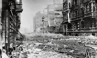 Dopo quella di Russia, con l’8 settembre e l’armistizio iniziò la seconda guerra di Giuseppe Bianchi: fatto prigioniero dagli ex alleati tedeschi con il suo reparto (era passato alla contraerea) ad Alessandria, fu deportato in Germania, trasformato in schiavo di guerra del Reich, sul confine orientale. Il suo memoriale racconta con crudezza e disincanto l’orrore della prigionia nelle mani dei tedeschi, che il giovane soldato aveva conosciuto sul fronte russo. Passato da un campo con l’insegna “Arbeit macht frei“, dopo un incontro fortuito con un ufficiale tedesco reduce della Russia fu trasferito a incarichi di lavoro sì pesantissimi, ma fuori dal campo. Impegnato a Breslavia (oggi Wroclaw, Polonia: nella foto, alla fine della guerra), Bianchi finì nel mezzo della battaglia finale tra Wermacht e Armata Rossa, intrappolato tra le katyusce (i razzi russi) che fischiavano e le bombe al fosforo tedesche che bruciavano ogni cosa (il racconto del memoriale è, in questo passaggio, quanto mai vivido e potente).
