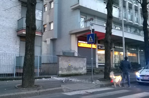 Alcuni pezzi di cemento e intonaco si erano staccati da un balcone al sesto piano. Fortunatamente non ci sono stati feriti. Vigili e pompieri hanno chiuso momentaneamente la stradaper precauzione, poi dopo le prime verifiche è stata delimitata per precauzione la zona di marciapiedi "esposta" alla caduta di mattoni, intonaco e cemento, in attesa dei lavori di ripristino da parte del condominio.