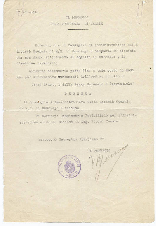 Centotrenta anni e la voglia di ricominciare. Festeggia con questo obiettivo la Società di Mutuo Soccorso “Onestà e Lavoro” di Casciago, una delle realtà più antiche del paese alle porte di Varese. Una storia nata nel 1885, passata attraverso il fascismo e rinata nel dopoguerra. Cultura, solidarietà, mutualistica e un’attenzione alla storia sono i cardini di questa realtà, guidata dal 2001 da Alberto Joli, geometra, al secondo mandato (aveva guidato la Società di Mutuo soccorso casciaghese già dal 1972 al 1986): compirà 25 anni di mandato e in occasione della festa per i 130 anni, in programma sabato 3 ottobre in mattinata, verrà premiato con la medaglia d’oro e una targa per il suo impegno.
