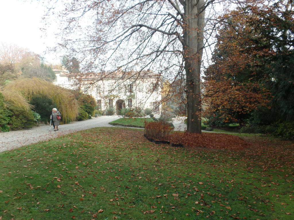 Sabato 14/11 ho avuto l’occasione di rivedere, ancora una volta, il parco di villa Veratti di Varese ancora privata anche se la proprietaria ha manifestato l’intenzione di donarla al FAI, la gente presente all’evento, realizzato con la presenza dell’agronomo Dott. Daniele Zanzi, è stata numerosa durante la visita da rendere difficile realizzare fotografie senza includere persone. La prima fotografia che scatto è dello scorcio dell’ingresso al cortile interno alla villa (1) che è stata realizzata su uno studio del Pollack nella II metà del 700 dopo che la proprietà venne confiscata ai frati francescani che operavano qui dalla fine del tredicesimo secolo e di cui rimangono tracce riconoscibili nella struttura dell’edificio, nel laghetto utilizzato allora come si può presumere per avere disponibilità di pesce, l’orto di dimensioni notevoli che serviva all’autosufficienza alimentare.