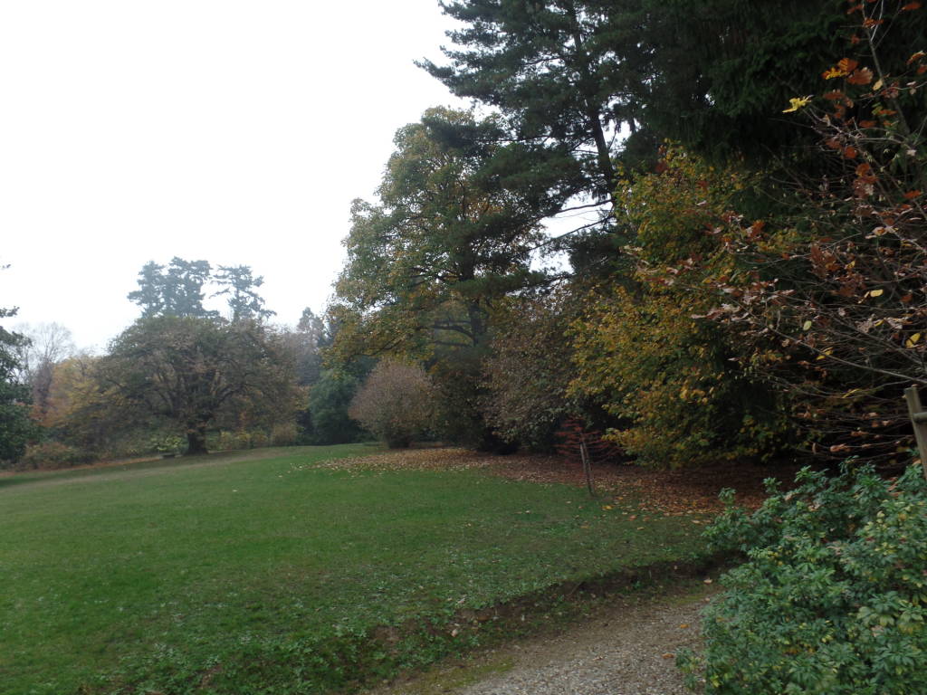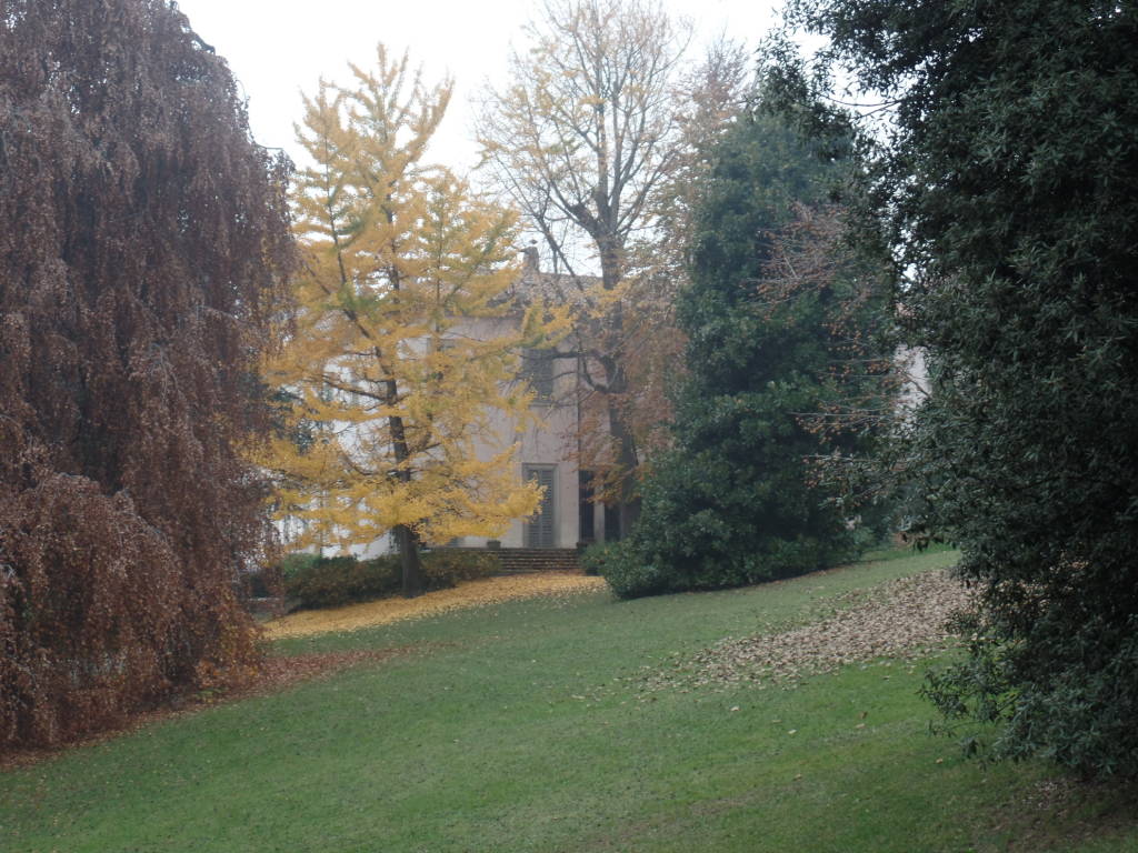 La grossa meraviglia è costituita dal parco con presenza di alberi radi ma di grande pregio dei quali ho ritenuto opportuno realizzare alcune foto approfittando del fatto che il grosso dei visitatori si fosse sposto nella zona più bassa del parco ecco dunque: il grosso faggio pendulo (3) a fianco della facciata, il Gingko (4) (Gingko biloba) albero originario dalla Cina ma ormai diffuso ampiamente in tutti i parchi sia per l’adattabilità ai climi diversi sia per le qualità di ornamentali date dalle foglia a ventaglio di colore verde glauco che in autunno diventano di un bel giallo oro nonché dalla struttura dell’albero, non ho fotografato l’albero dei fazzoletti (Davidia involucrata) perché ormai completamente spoglio e assediato dai visitatori che ne ammiravano i frutti che Daniele Zanzi avvertiva che difficilmente avremmo ottenuto una pianta dal seme per mancanza di conoscenze relative alle condizioni di possibilità di sviluppo dello stesso chiudo con 2 foto con visione di parte del giardino (5,6). Ricordo che tutto questo è successo in Varese il pomeriggio del giorno successivo agli atti di terrorismo verificate a Parigi, a vigilare su visitatori, fotografi, giornalisti e guida vi era solo il giardiniere che ringrazio sentitamente.