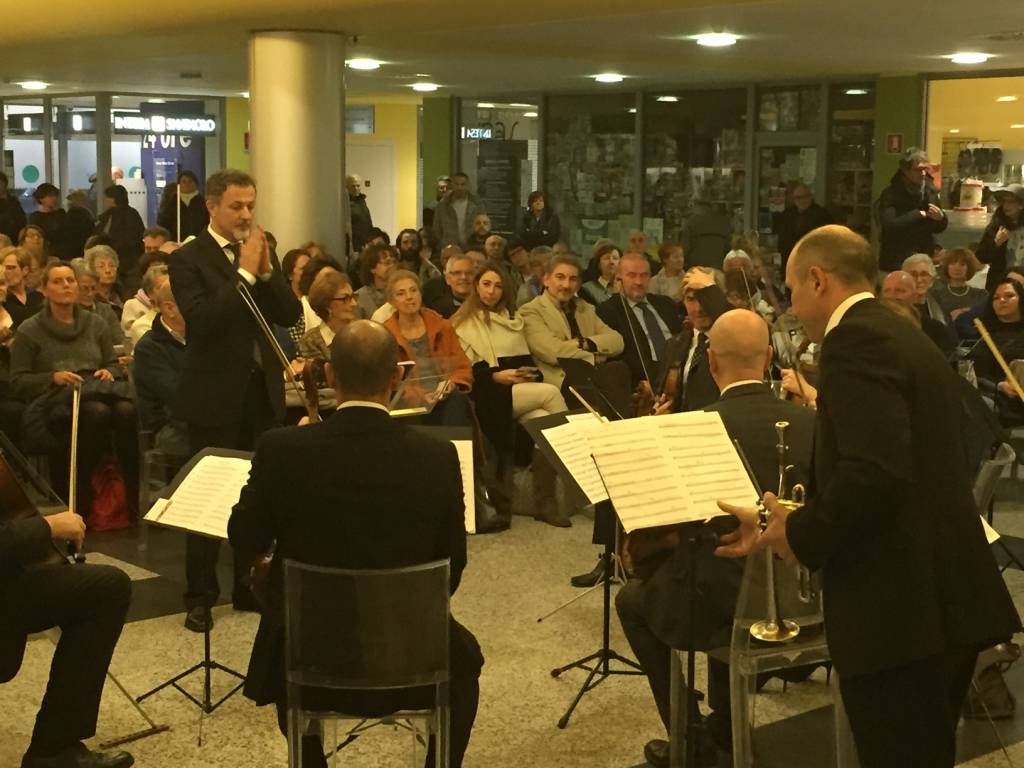 Accanto al direttore Bravi, seduto in prima fila per ascoltare l’Ensemble dell’Orchestra Carlo Coccia c’era il presidente del Consiglio regionale Raffaele Cattaneo, legato al direttore da una lunga amicizia.