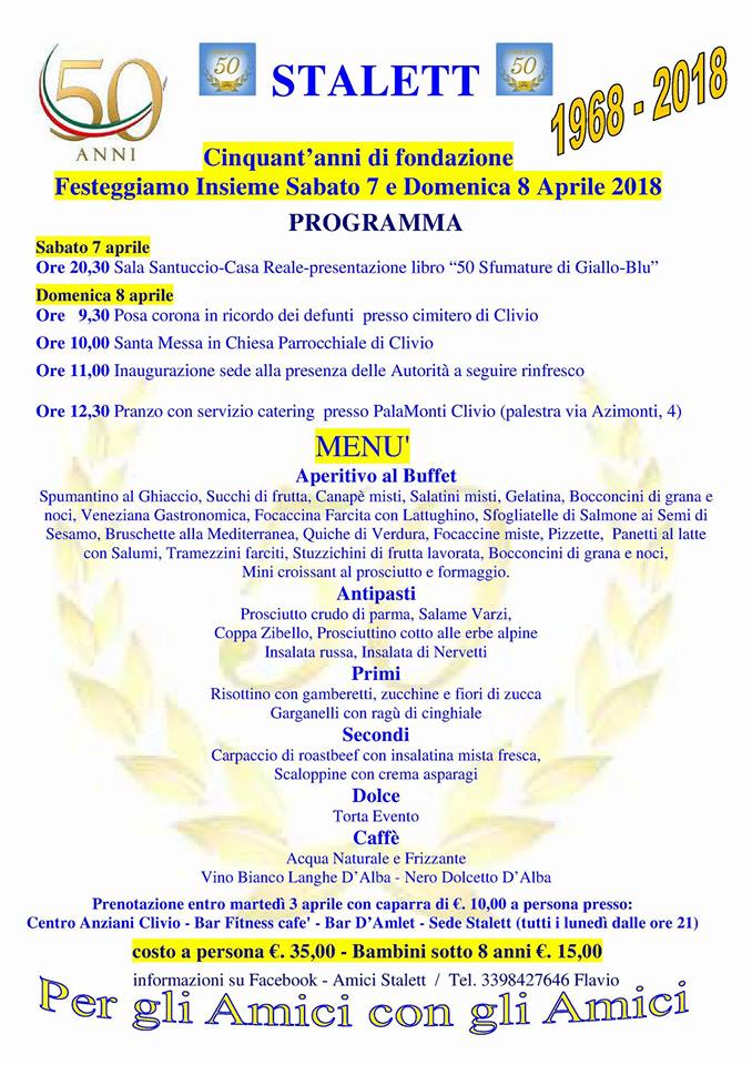 Grande festa sabato 7 e domenica 8 aprile a Clivio per celebrare i 50 anni di fondazione dell’associazione “Amici Stalett”.