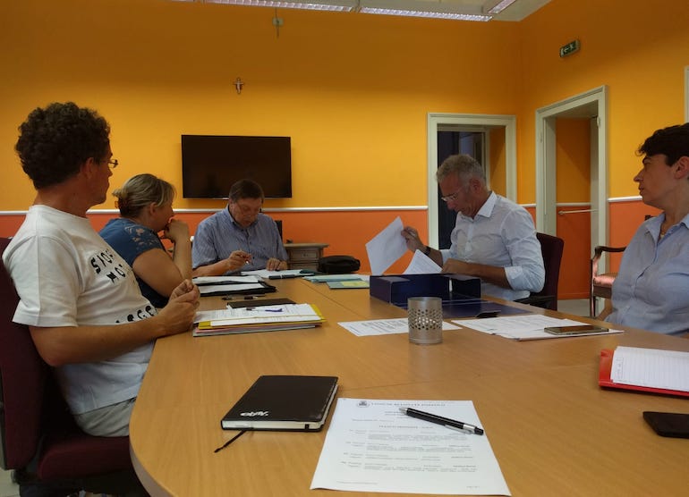 Rispetto a esigenze più concrete e immediate, un valore politico particolare invece il punto 5: l’attivazione della “Pagina Facebook istituzionale del Comune di Lonate Pozzolo”, che era stata oggetto di una proposta e poi di una lunga polemica di Paolo Tiziani (oggi in Grande Nord). Sarà curata da un dipendente comunale individuato, dal sindaco stesso e dagli assessori Perencin e Derisi (nella foto sotto: la riunione di giunta fotografata da Perencin, che ha portato la proposta in giunta).
