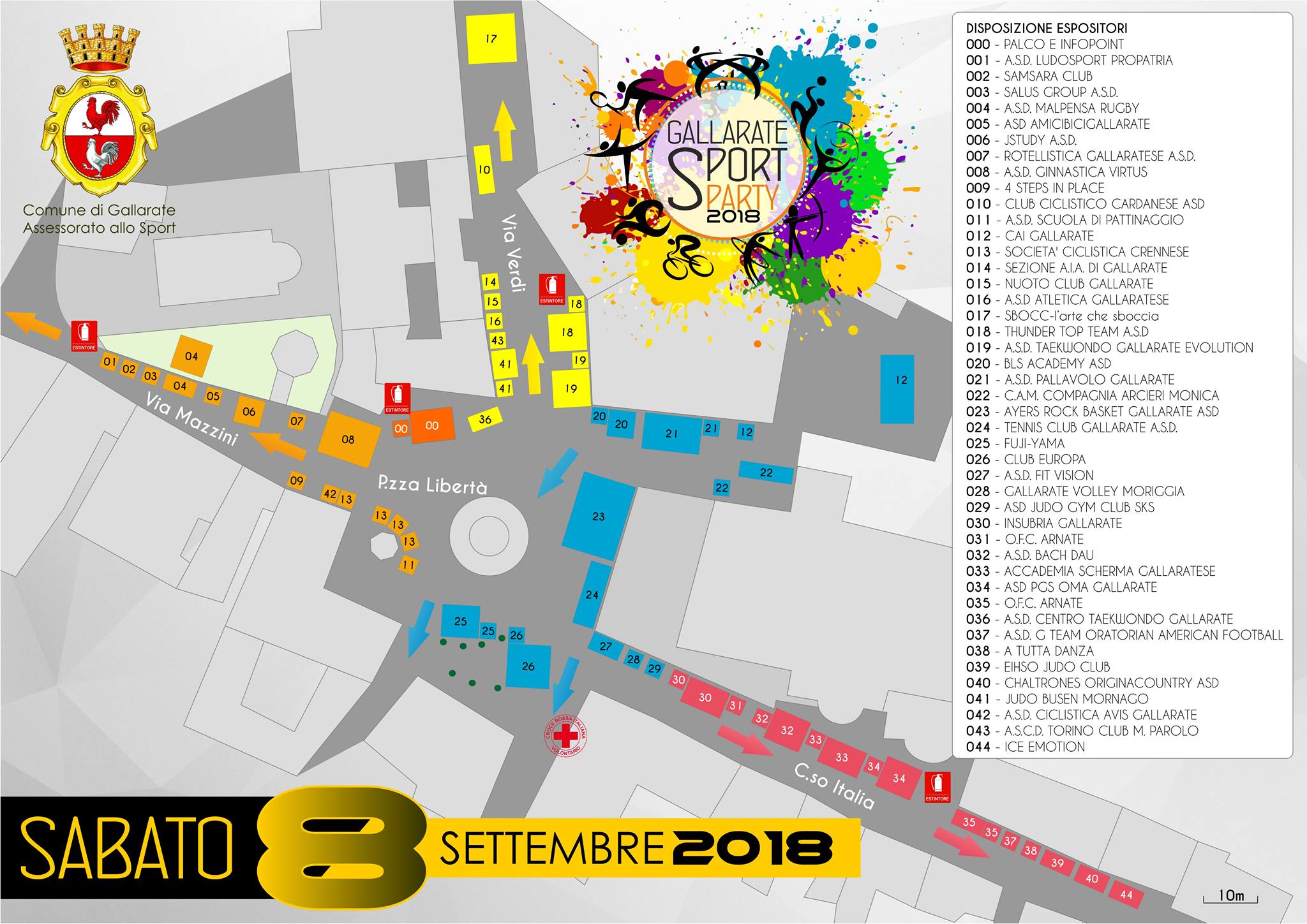 Nella mappa qui accanto (clicca qui per aprirla in grandi dimensioni) trovate le indicazioni su tutte le 44 associazioni sportive presenti con propri stand: dal pattinaggio al tiro con l’arco, dal ciclismo al circoteatro, dalle arti marziali al football americano, c’è tanto da vedere.TAG ARTICOLO