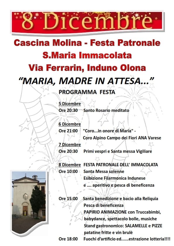 Sabato 8 dicembre la frazione di Cascina Molina, proprio sul confine tra Induno Olona e Varese, festeggia come da tradizione l’Immacolata, con una giornata di musica, momenti conviviali e giochi per i bambini.