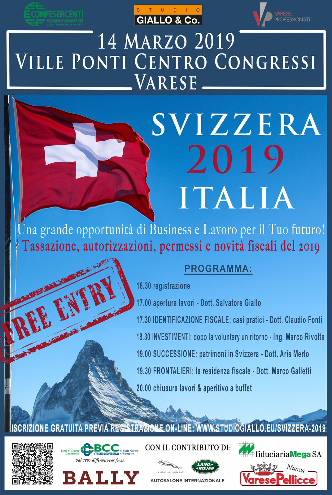 L’appuntamento è per giovedì 14 marzo dalle 16,30 alle 20 L’accesso al convegno sarà gratuito, previa registrazione online al link www.studiogiallo.eu/svizzera-2019.