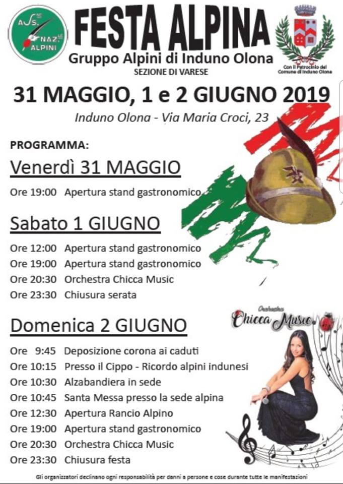 Si apre questa sera, venerdì 31 maggio, e prosegue fino a domenica sera la Festa Alpina organizzata dal gruppo Alpini di Induno Olona nella sede di via Croci.
