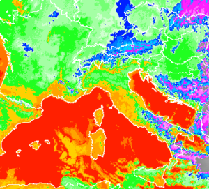 L’aria fredda stagna sulla pianura, mentre sui rilievi le temperature si alzano: una dinamica ben restituita dalla foto satellite termica che mostra appunto la fascia prealpina e collinare con temperatura più alta (in giallo) rispetto alle aree di pianura del Centro-Nord Italia (in verde). “A Campo dei Fiori la temperatura non scende sotto 0°C dal 30 dicembre 2019”.