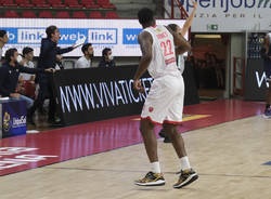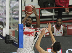 I lunghi biancorossi dominano l'area: l'americano porta in campo una bella dose di energia. Prova incoraggiante in attacco per Ruzzier mentre De Nicolao "stecca" alla prima da titolare