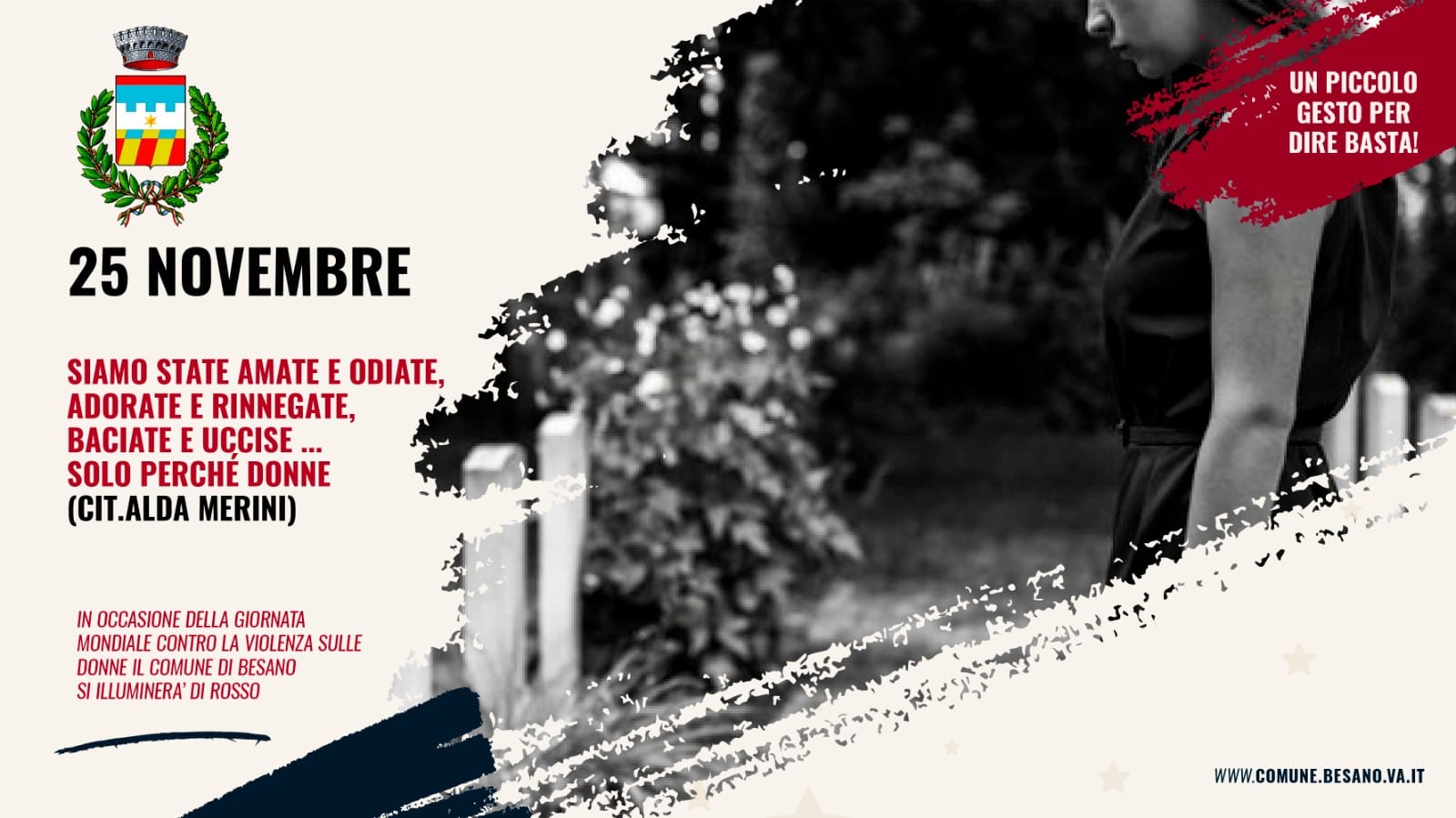 Il 25 novembre, Giornata internazionale contro la violenza sulle donne, il Municipio di Besano si illuminerà di rosso.