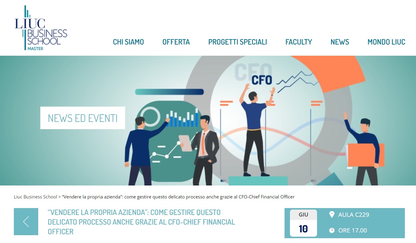 La Liuc Business School di Castellanza nell’ambito dell’Executive Master CFO – Direzione Amministrazione Finanza e Controllo, diretto da Catry Ostinelli, organizza una lezione aperta e gratuita dal titolo “Vendere la propria azienda: come gestire questo delicato processo anche grazie al CFO-Chief Financial Officer”.
