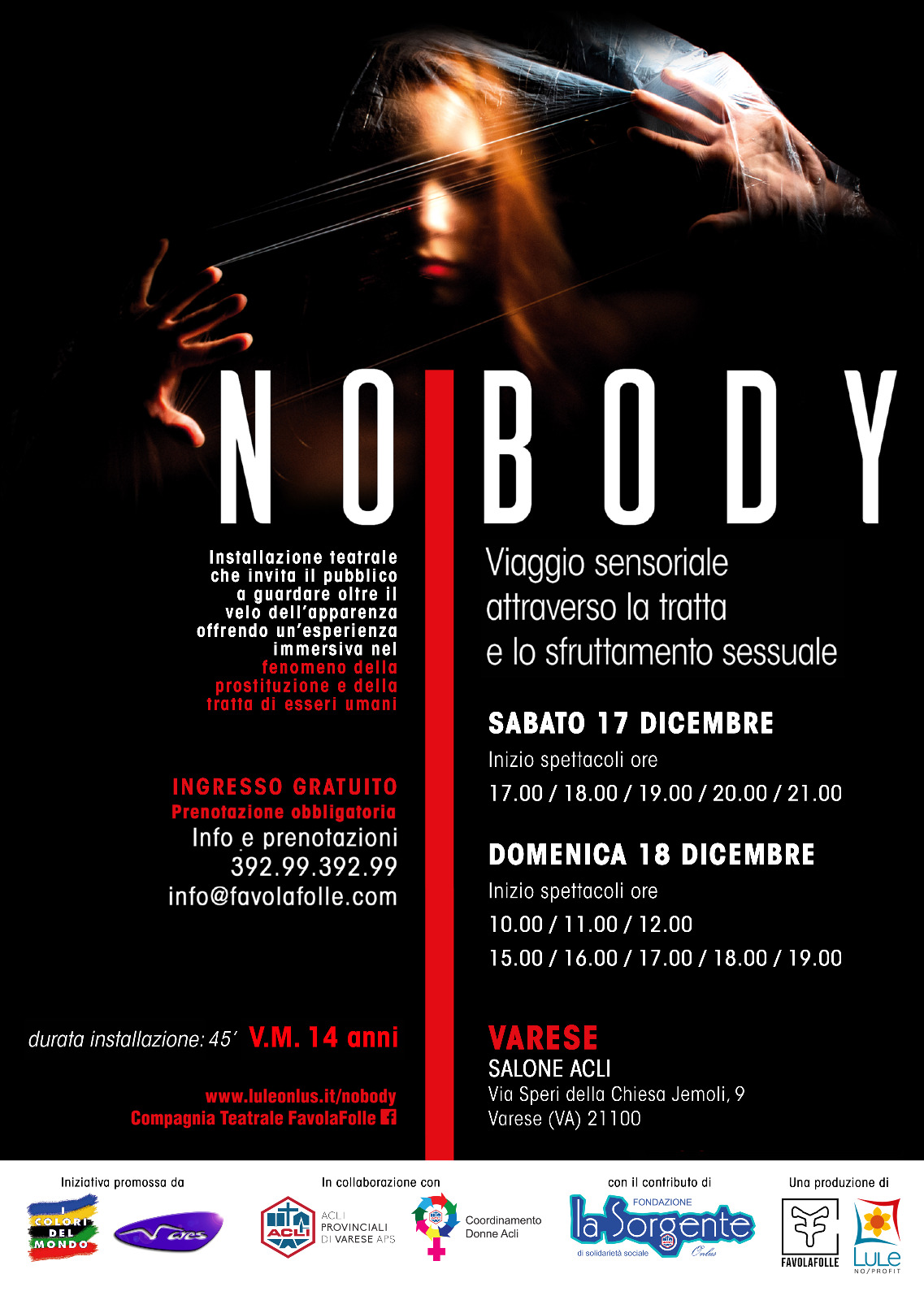 Appuntamento a sabato 17 e domenica 18 dicembre al salone Acli di Varese con un’installazione teatrale che vuole invitare il pubblico a guardare oltre l’apparenza, offrendo un’esperienza immersa nel fenomeno della prostituzione e della tratta di esseri umani.