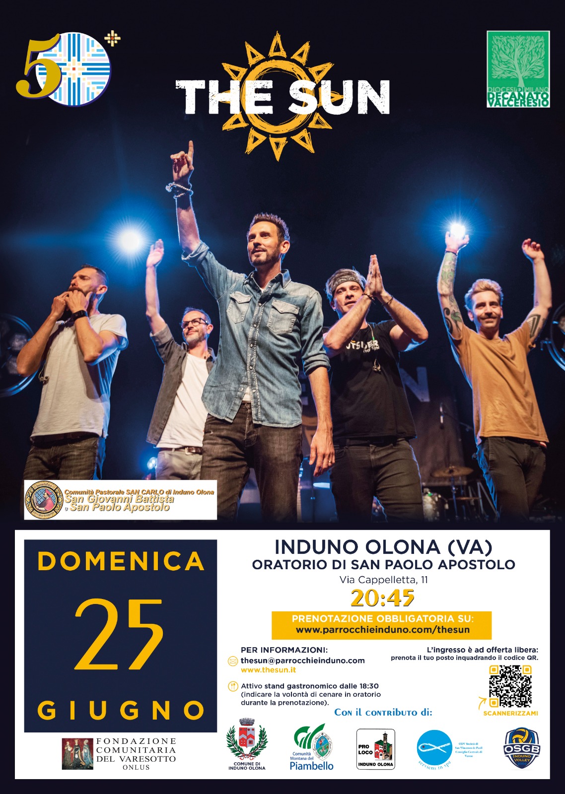 Appuntamento con il christian rock dei The Sun, questa sera – domenica 25 giugno – alle 20,45 in via Cappelletta per il grande concerto che chiuderà le iniziative per festeggiare i 50 anni della consacrazione della chiesa parrocchiale di San Paolo.