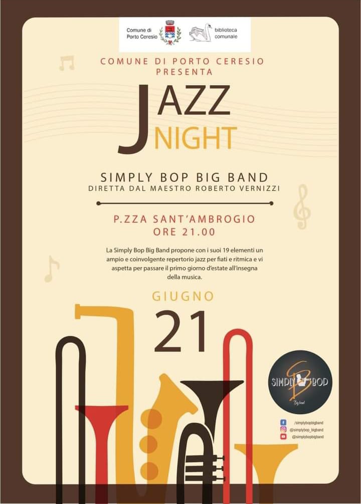 A seguire, alle 21 in piazza Sant’Ambrogio, serata jazz con il concerto del gruppo Simply Bop big band, sempre libero e gratuito per tutti (è possibile prenotare il proprio posto su Eventbrite)