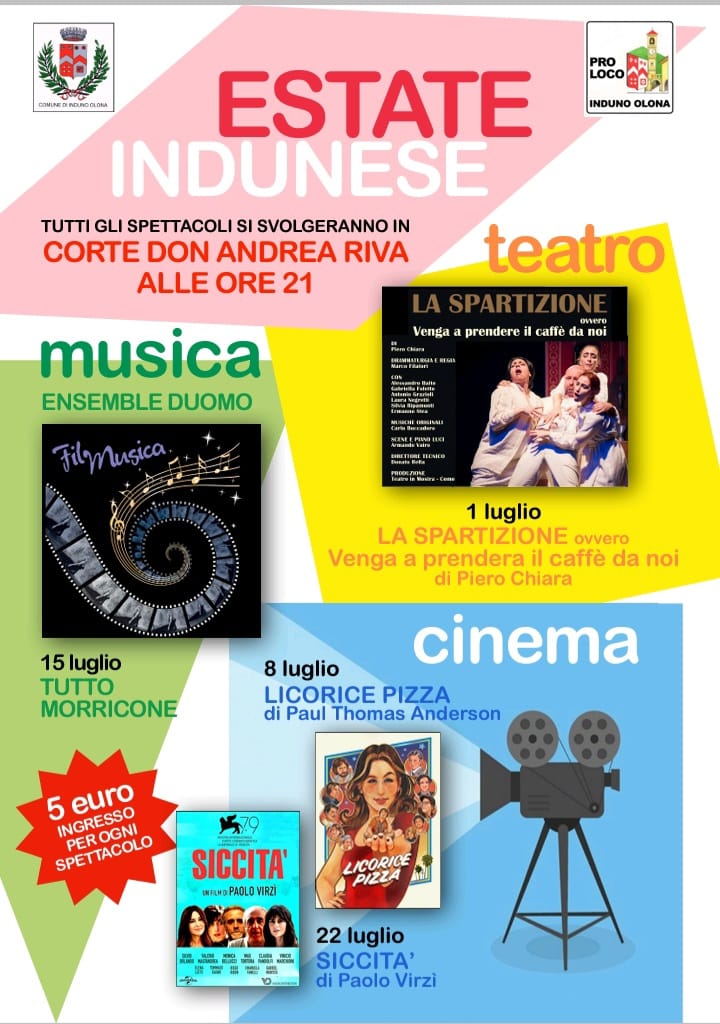 Quattro appuntamenti per trascorrere altrettante serate al fresco, con spettacoli e musica. L’Estate Indunese 2023, organizzata dal Comune e dalla Pro loco di Induno Olona propone due film, uno spettacolo teatrale e un concerto nello spazio della Corte Riva, sempre alle 21.