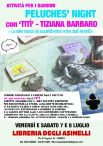 Due giorni speciali dedicati ai bambini alla Libreria degli Asinelli di Varese in questo weekend d’estate con la Peluches’ night.