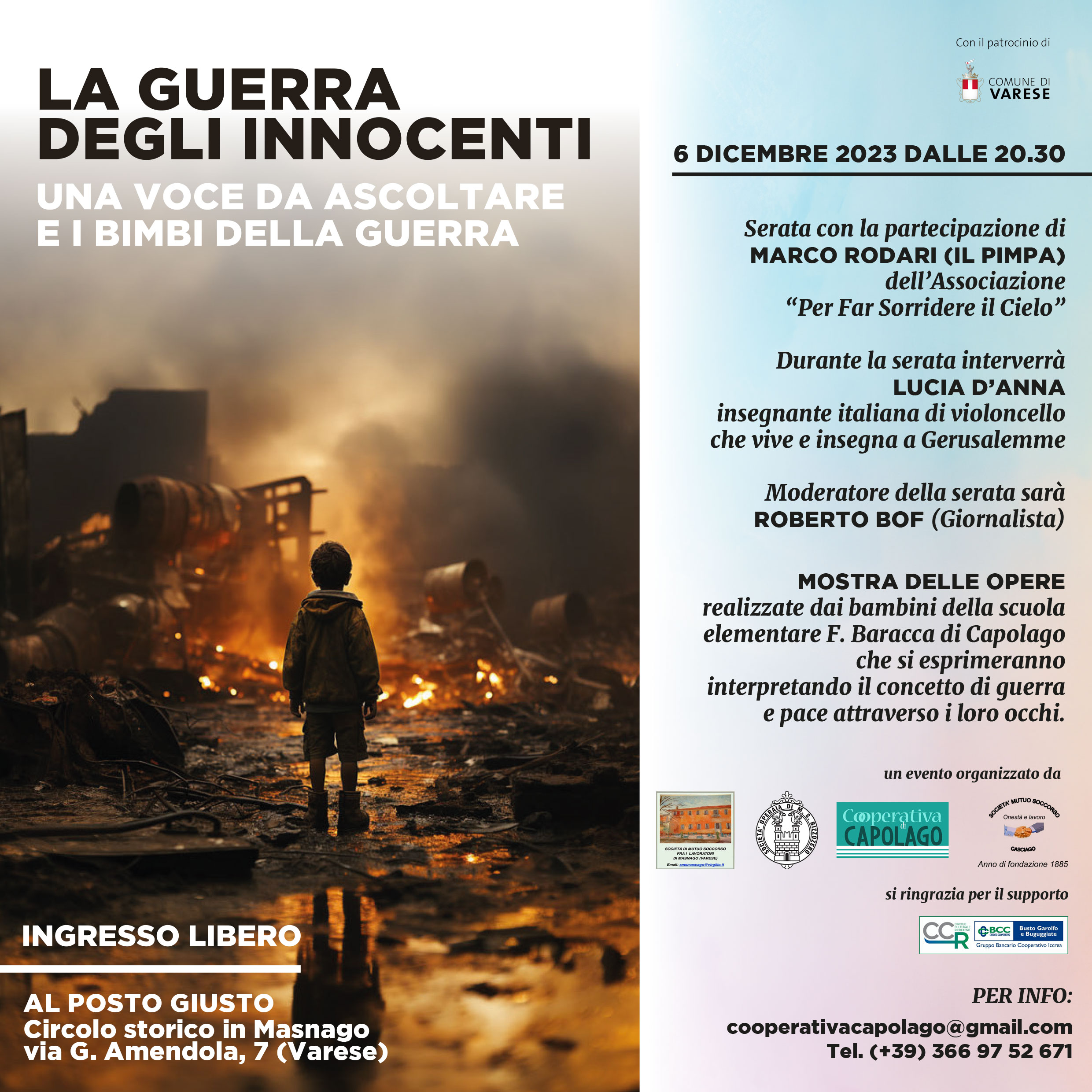 Il 6 dicembre al Circolo di Masnago (Al Posto Giusto, via Amendola 7) sarà presente Marco Rodari, in arte “Il Pimpa” per parlare de “La Guerra degli Innocenti”.