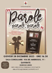 Il Comune di Gavirate invita le famiglie a teatro per trascorrere insieme un pomeriggio di poesia e magia con lo spettacolo “Parole, parole, parole” in programma nel pomeriggio di giovedì 28 dicembre alle ore 16.30