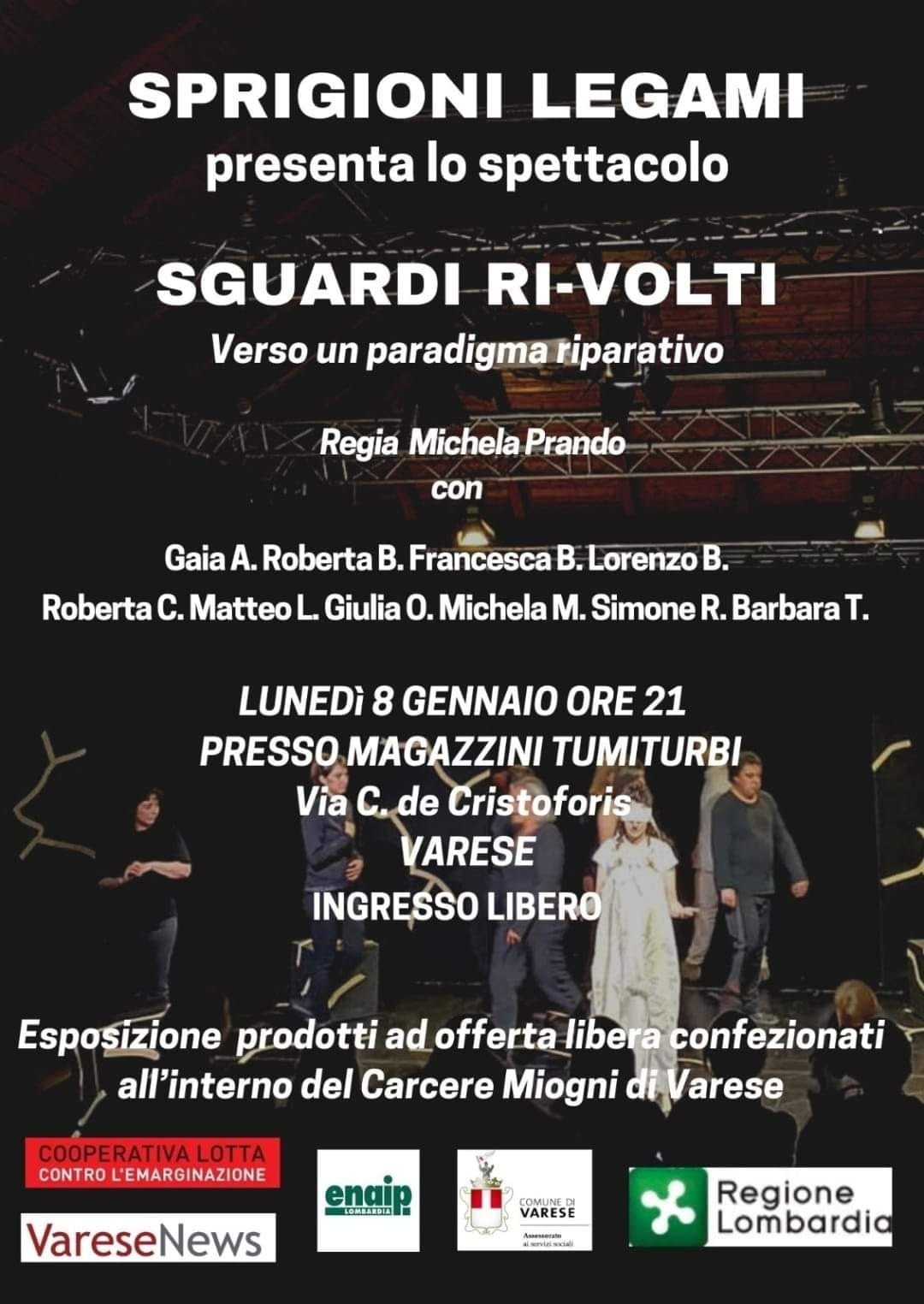 Nato da interviste fatte in carcere a chi ha commesso un reato o a chi le ha subite, lo spettaclo Sguardi ri-volti di Michela Prando si prepara ad andare in scena. L’appuntamento è per la sera di lunedì 8 gennaio, alle 21, ai Magazzini Tumiturbi di via De Cristoforis a Varese. Uno spettacolo nato con l’obiettivo di conoscere il mondo del carcere e avvicinarlo alla comunità, nato da un’idea di cooperativa “Lotta Contro l’Emarginazione“, Fondazione Enaip e la direzione della Casa Circondariale di Varese Miogni.