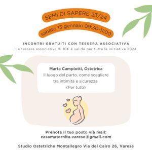 Lo Studio ostetriche Montallegro di Varese inaugura gli incontri gratuiti “Semi di sapere” riservati alle mamme e i papà in attesa nella mattinata di sabato 13 gennaio alle 9.30 nella sede di via Del Cairo 26 a Varese.