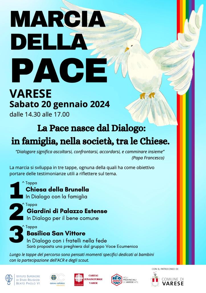 E’ in programma sabato prossimo – 20 gennaio – la Marcia per la pace organizzata a Varese dall’Istituto religioso di studi superiori Paolo VI, dall’Azione cattolica, dalla Caritas della zona pastorale di Varese e dalle Acli cittadina e provinciale, con il patrocinio del Comune.