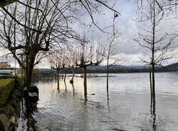 È la natura, in una delle sue forme, che si riprende un lembo di terra a causa della forte pioggia scesa nelle ultime ore sul Varesotto: l’acqua che invade la passeggiata, le rive (abituati a vederle a secco, negli ultimi anni, e dunque quasi una rarità). Persino alcune panchine, alcuni spazi in muratura che fungono da basamento per i cartelli del divieto di sosta rimangono sommersi regalando un paesaggio surreale, quello dell’alluvione, dell’acqua alta stile Venezia.