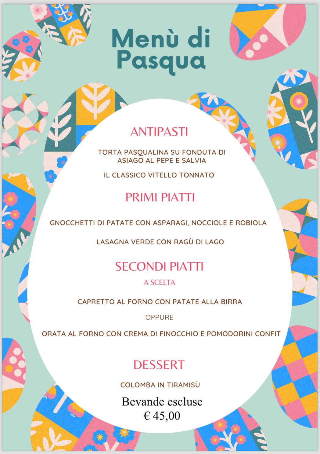 Infine per chi non avesse già deciso cosa fare a Pasqua, ecco il menù ideato dallo staff de Al Posto Giusto di Masnago: di antipasto torta pasqualina su fonduta di asiago al pepe e salvia e il classico vitello tonnato, primi piatti con gnocchetti di patate con asparagi, nocciole e robiola e lasagna verde con ragù di lago e secondi piatti a scelta tra capretto al forno con patate alla birra oppure orata al forno con crema di finocchio e pomodorini confit. Di dessert una fantastica colomba in tiramisù. Tutto per 45 euro, bevande escluse. Anche qui, prenotazione consigliatissima (via cellulare e Whatsapp al numero 3756733475).